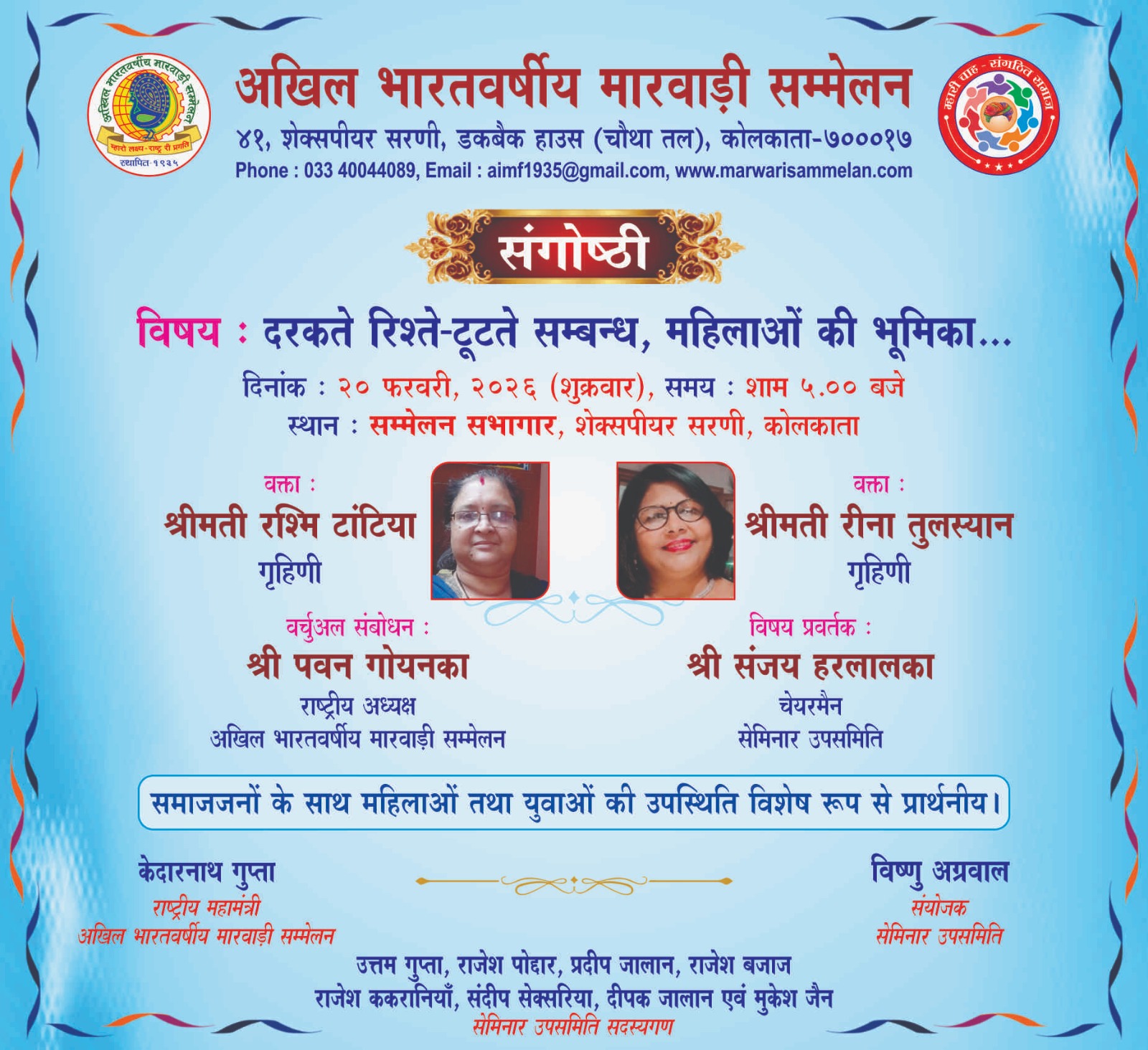 संगोष्ठी: दरकते रिश्ते - टूटते सम्बन्ध, महिलाओं की भूमिका...